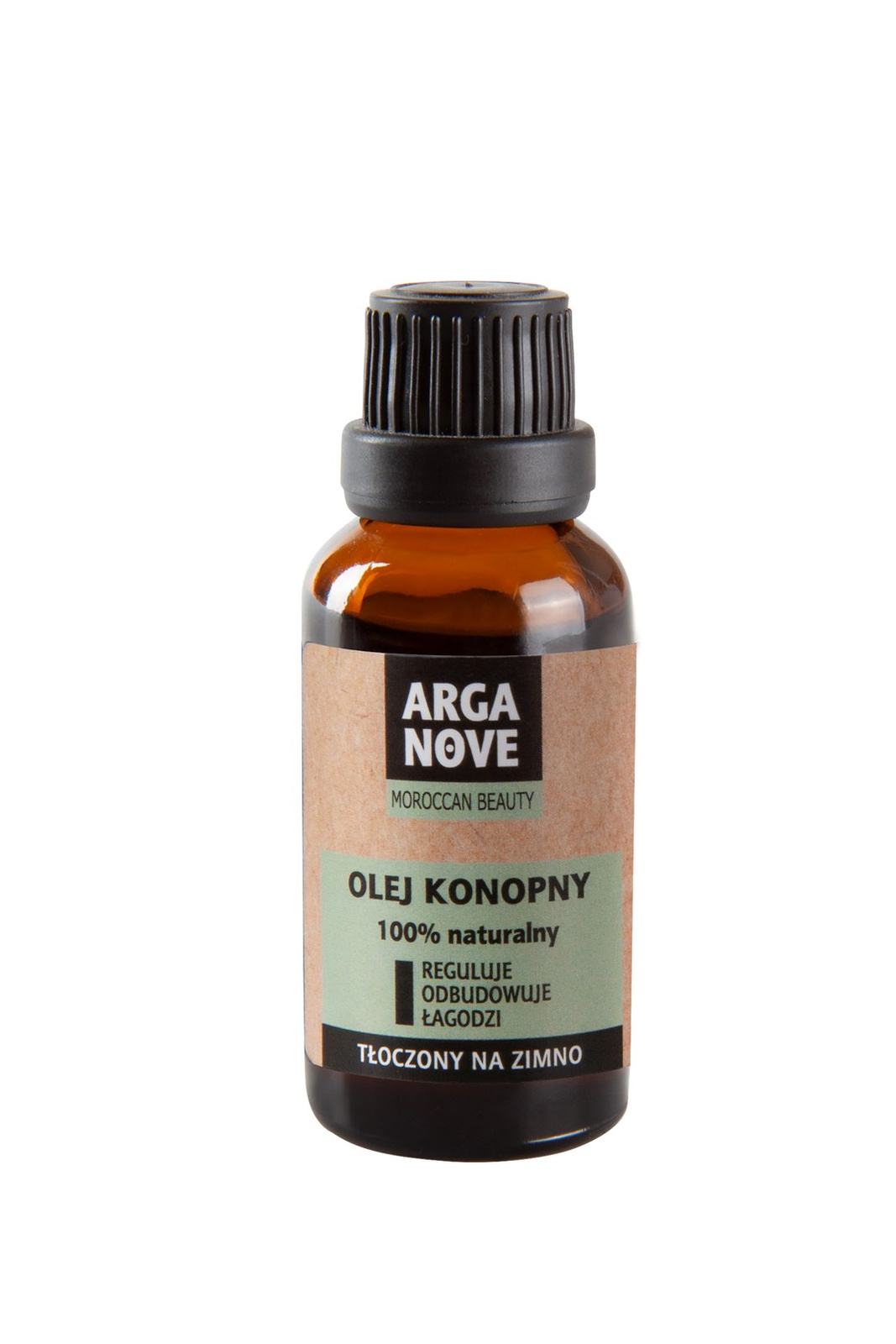 Olej konopny Arganove nie zawiera sztucznych barwników, konserwantów ani perfum. Po otwarciu należy przechowywać go w lodówce. Szklana butelka zakończona jest pipetą, która ułatwia aplikację produktu.