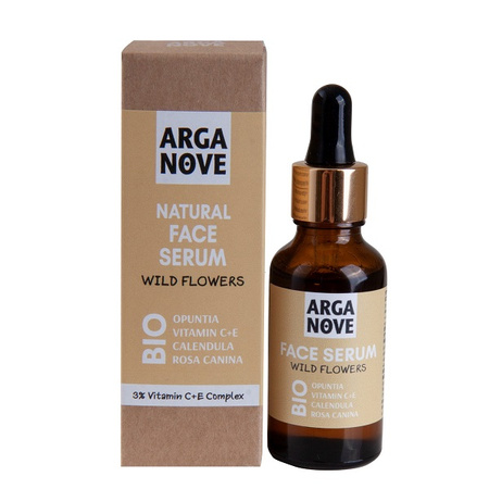 Antyoksydacyjne serum Dzikie Kwiaty to produkt przeznaczony do codziennej pielęgnacji w formie lekkiego olejku z nowoczesną, pochodną witaminy C - Tetrahexyldecyl Asscorbate oraz nauralną witaminą E nazywaną "witaminą młodości", bio olejem z opuncji figowej oraz łagodzącym nagietkiem. Polecane jest do skóry z przebarwieniami, dojrzałej, naczynkowej, zmęczonej iz iemistej.